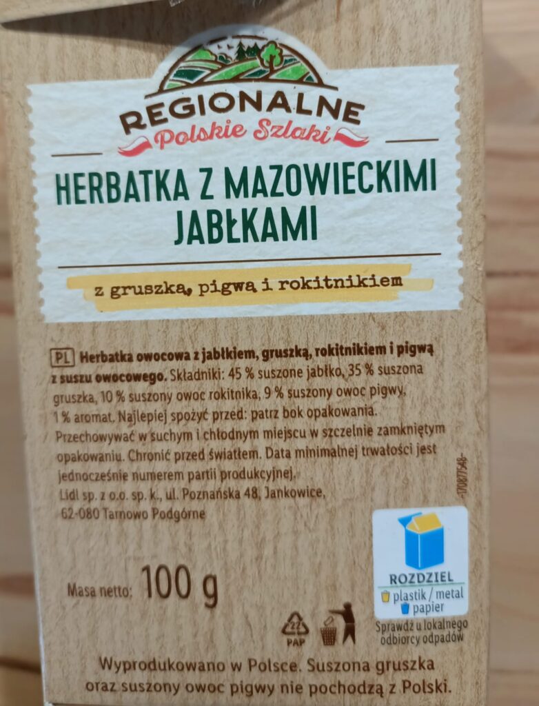 Oznaczenie na opakowaniu herbaty, do jakiej frakcji odpadów zalicza się opakowanie po produkcie
